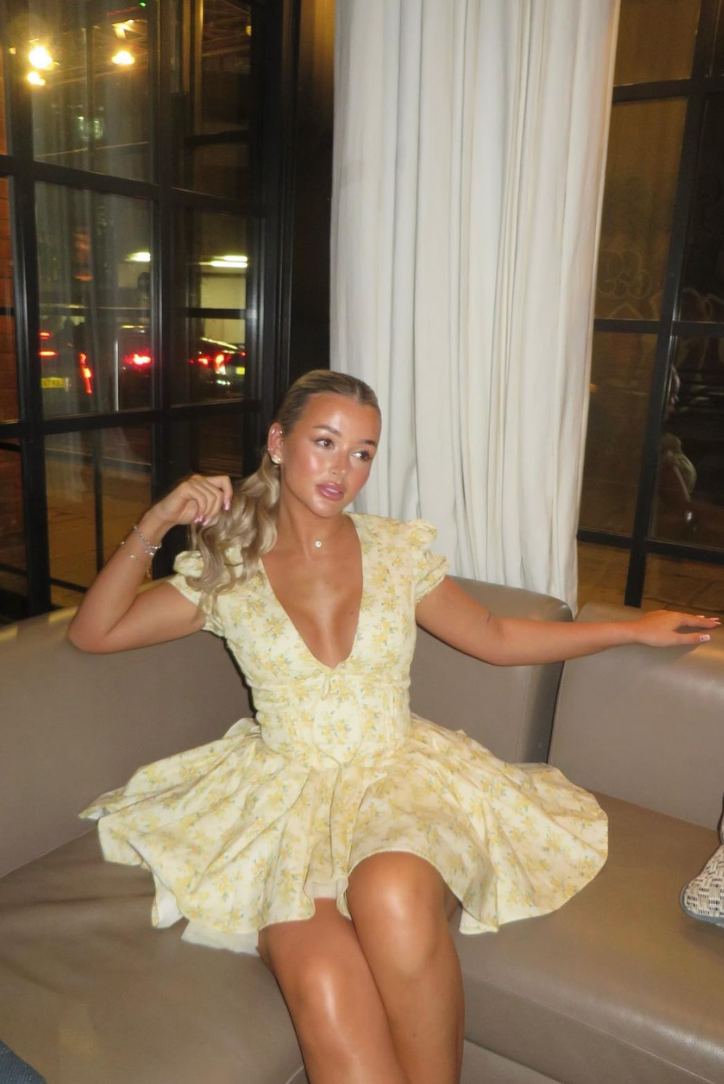 This yellow floral puff sleeve mini dress is the perfect mix of playful and romantic. With its structured bodice, deep V-neckline, and flared skirt, this design delivers a flattering fit that moves effortlessly from brunch dates to garden parties.