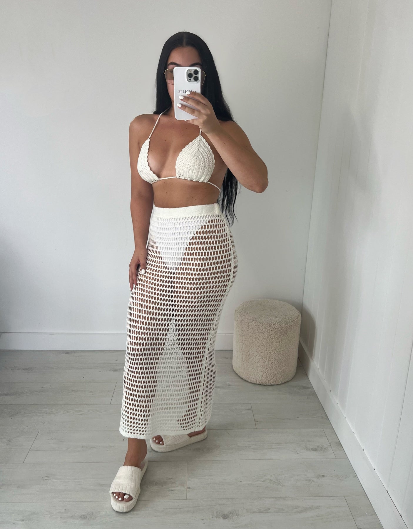 Noemi | Beige Crochet Bikini & Maxi Skirt Set