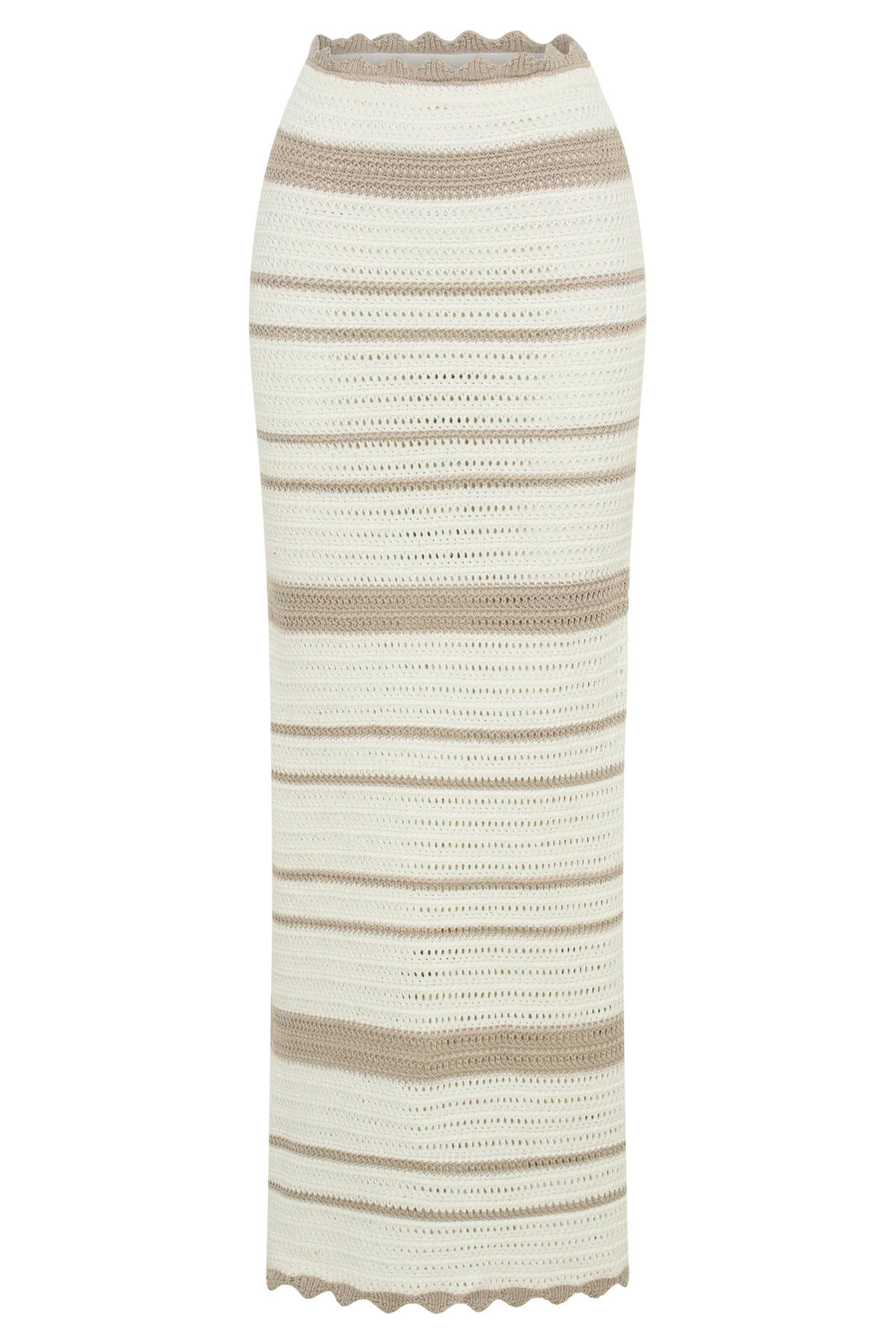 • Striped Maxi Skirt – Horizontal stripes elongate the figure while adding a bold statement
