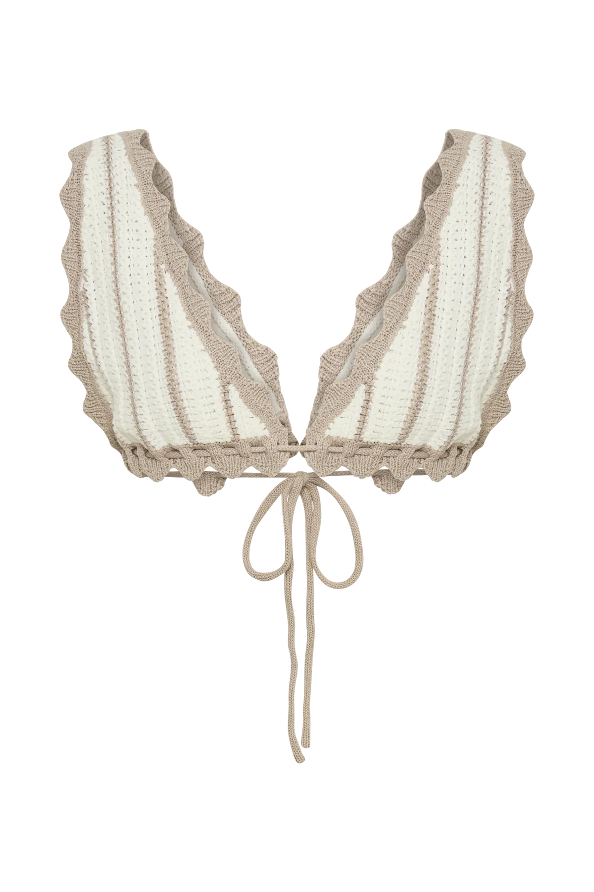 • Scalloped Crochet Top – Plunging neckline with wide straps and back tie for a secure fit